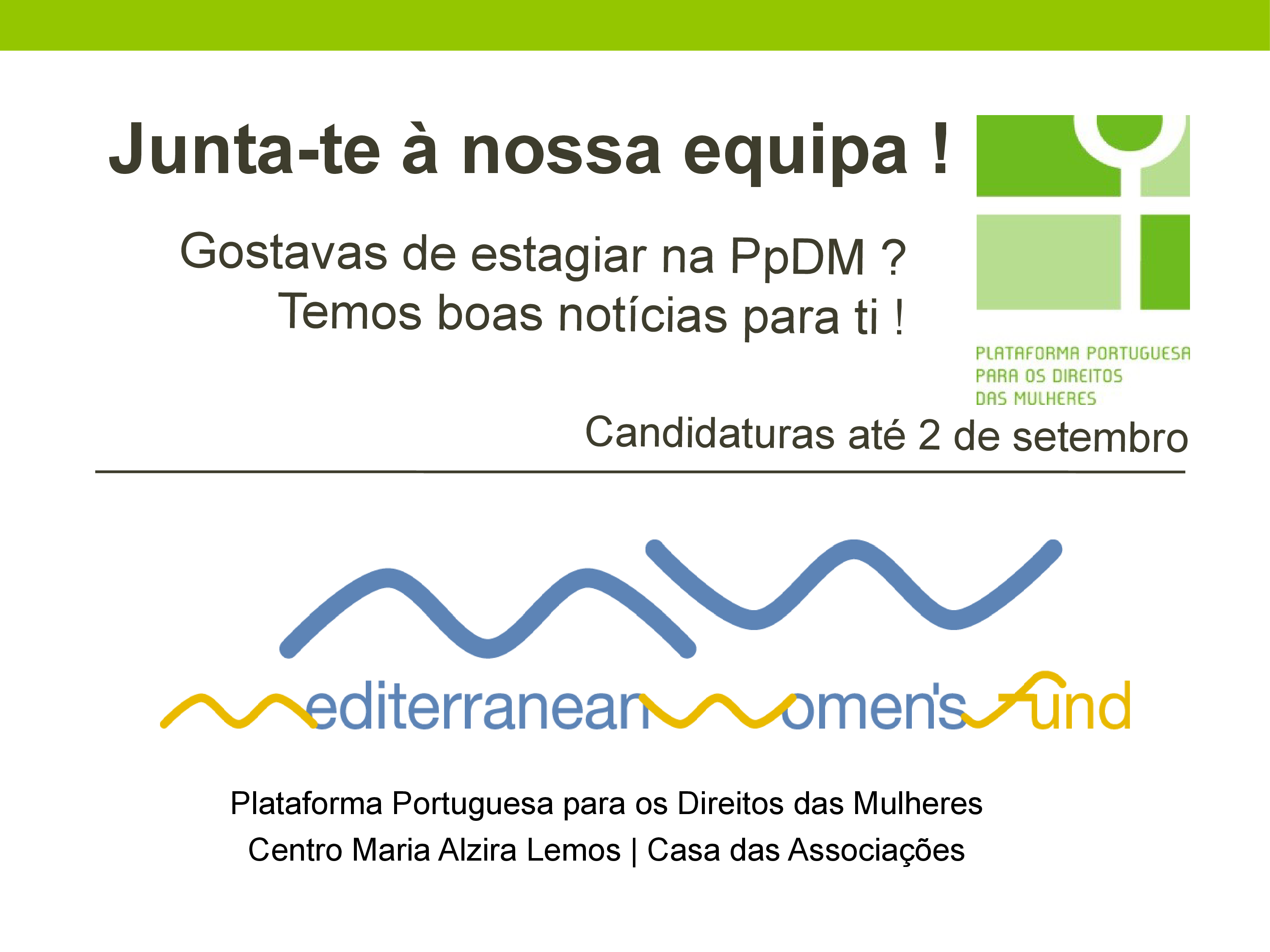 ESTÁGIO CENTRO MARIA ALZIRA LEMOS | CASA DAS ASSOCIAÇÕES – assistente de REFORÇO ORGANIZACIONAL Setembro 2016 – Janeiro 2017 (Lisboa) A PpDM está a lançar uma posição para um estágio …