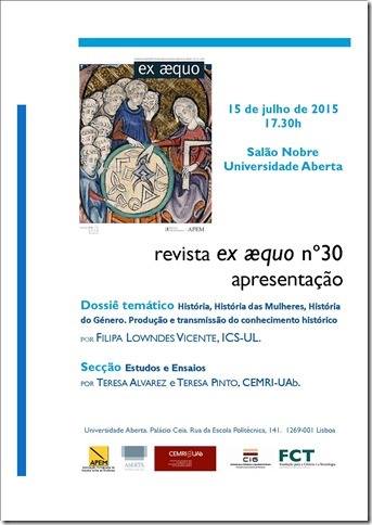 A sessão de apresentação da revista ex eaquo nº30, iniciativa conjunta da APEM e do Grupo de Investigação Estudos sobre as Mulheres do CEMRI, realiza-se no dia 15 de julho …