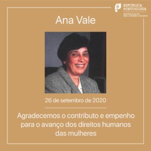 O movimento das mulheres perdeu uma mulher visionária que muito trabalhou para concretizar a igualdade entre mulheres e homens, em Portugal e na Europa.Ana Vale, the first President of @EuropeanWomen passed away this Saturday. The women’s movement lost a visionary woman who made so much for equality between women and men in the EU and in Portugal. Rest in power Ana Vale.