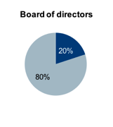 Os gráficos indicam uma grande disparidade de género. O domínio masculino atravessa fronteiras nacionais e é visível em todos os tipos de empresas de media. Em média, 80 por cento dos/as diretores/as são homens, 17 por cento dos altos executivos da administração são mulheres, e apenas seis mulheres CEOs lideram as empresas na lista das 100 maiores. Trinta empresas não têm mulheres na direção.