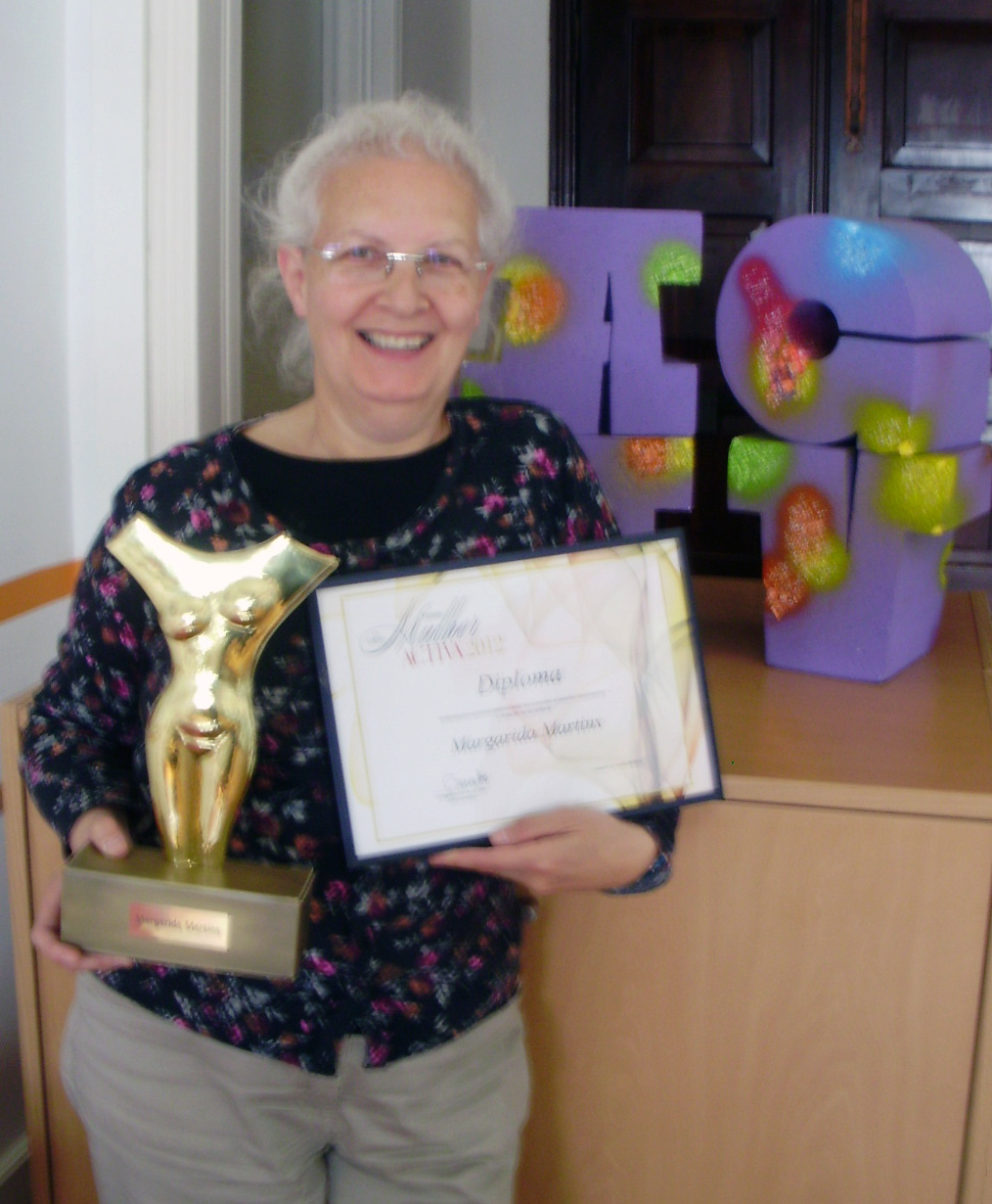 Margarida Martins, fundadora e vice-presidente da Associação de Mulheres Contra a Violência, vice-presidente da Associação Portuguesa para a Prevenção e Abuso das Crianças e presidente da Plataforma Portuguesa para os Direitos das Mulheres e da Associação Plataforma Internet Segura, recebeu das mãos da primeira-dama, Maria Cavaco Silva, e de Francisco Pinto Balsemão, o Prémio Mulher ACTIVA 2012.